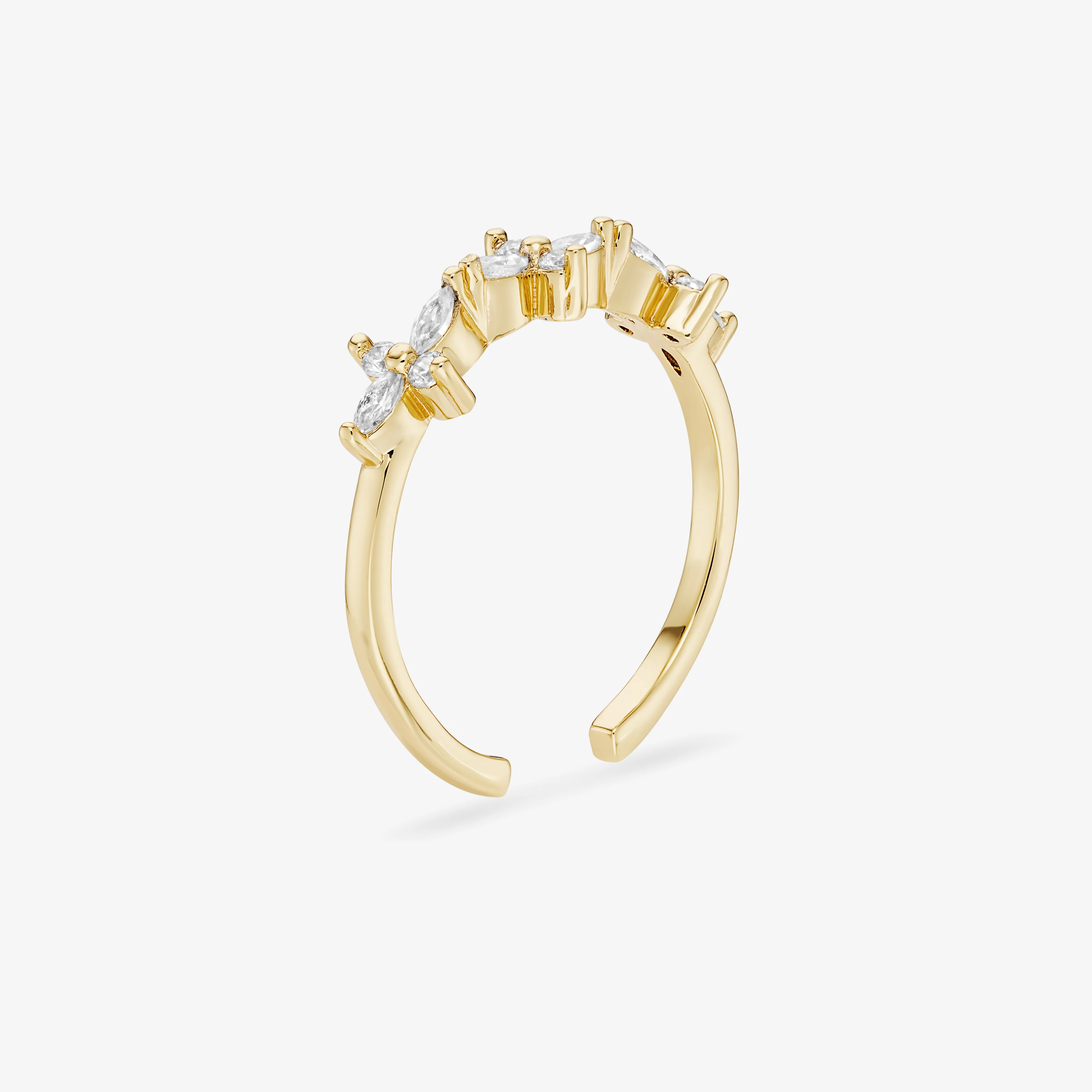 Cette jolie bague ajustable est composée de plusieurs petites pierres blanches en forme de fleurs. 🌸✨