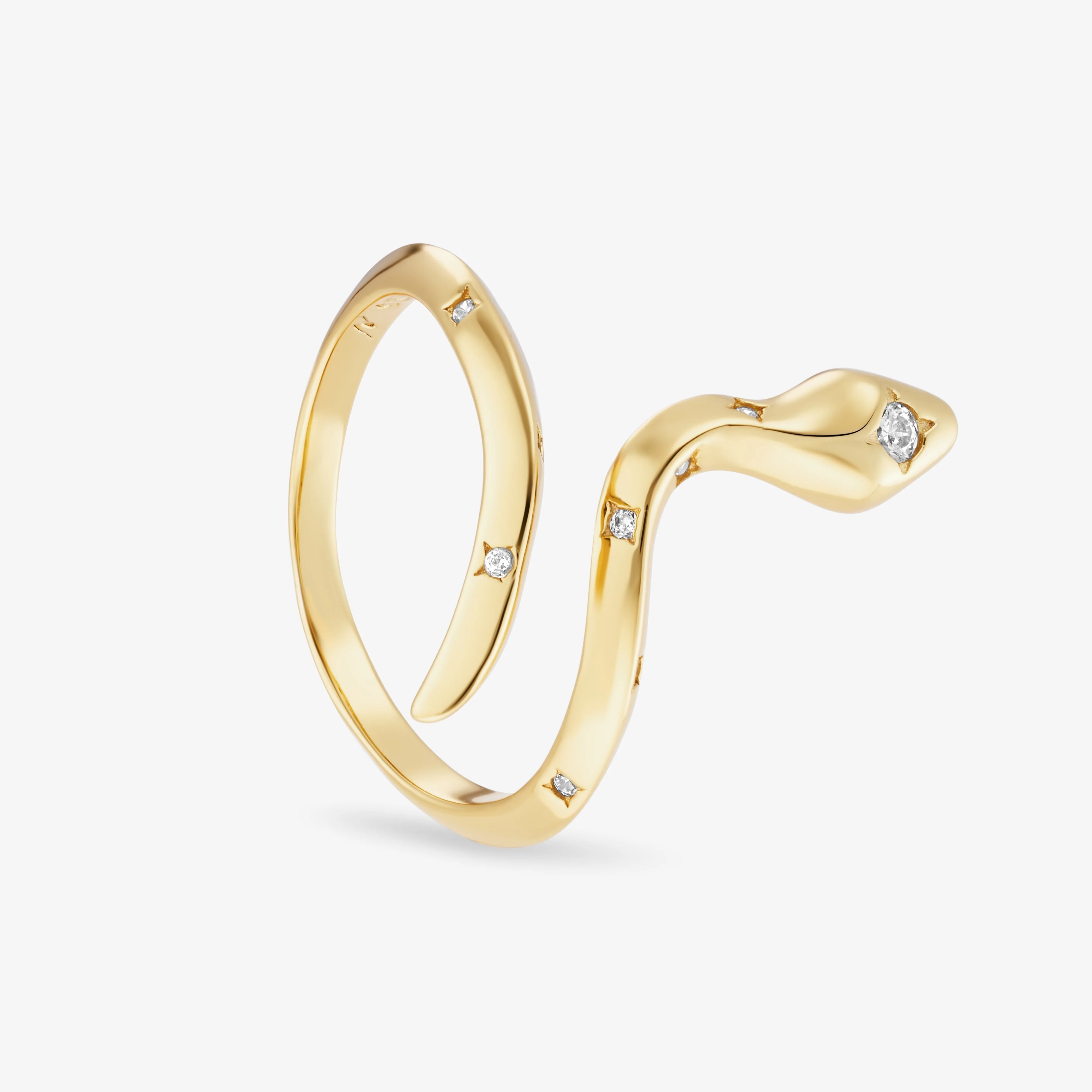 L’envoûtante bague Naja s’enlace autour de votre doigt. Sa peau est ornée de pierres zircon blanches. 🐍