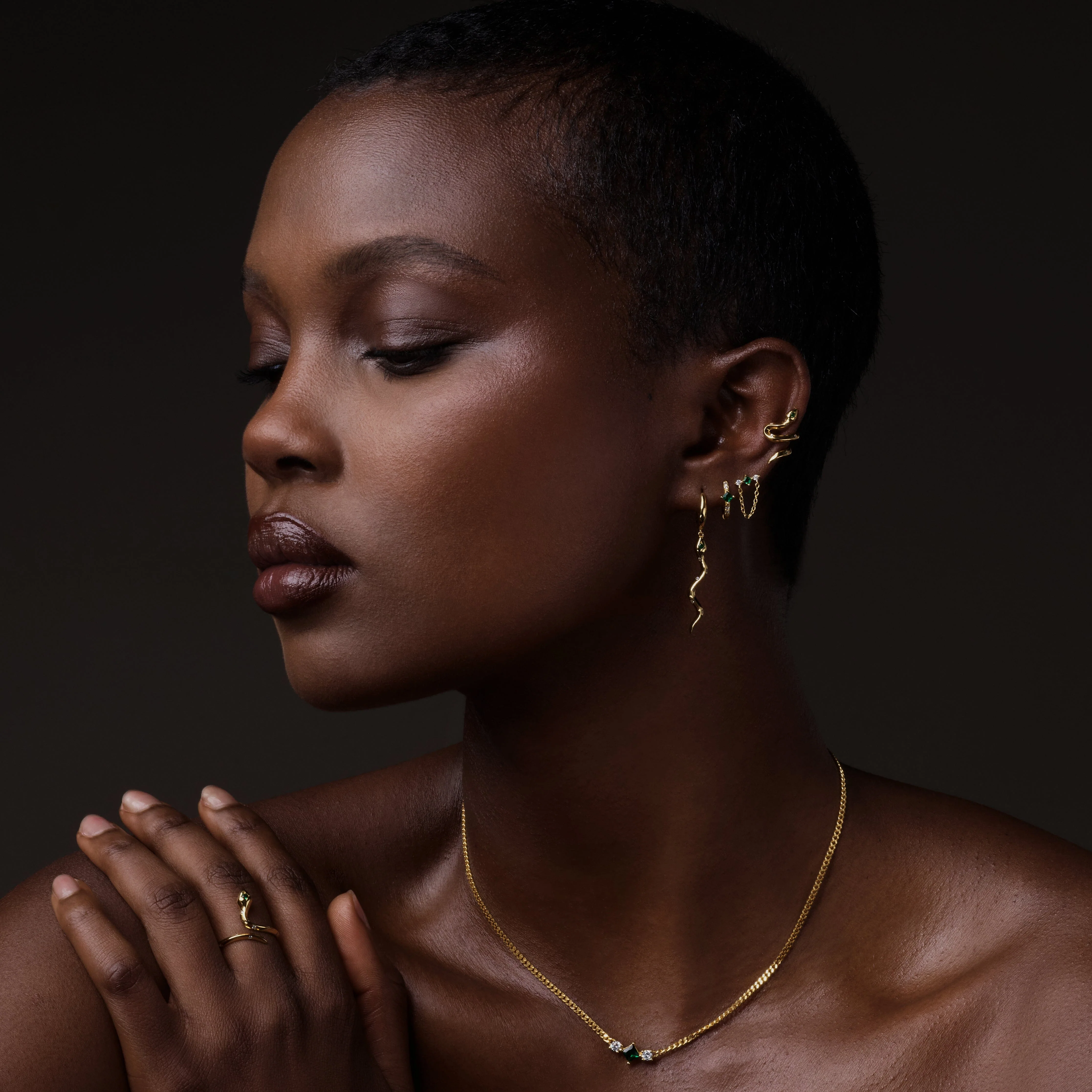 L'earcuff Naja est l'une de nos pièces phares de la collection Dune : cet élégant faux-piercing s'enlace délicatement autour votre oreille. 🐍