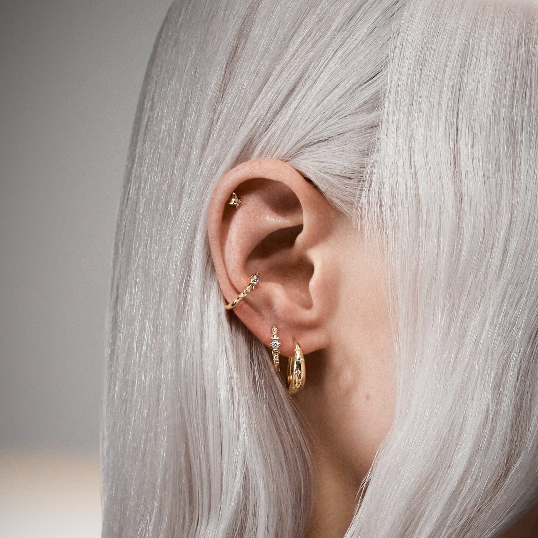 Cette petite boucle d'oreille est sertie d'une pierre de zircon blanche. 🤍