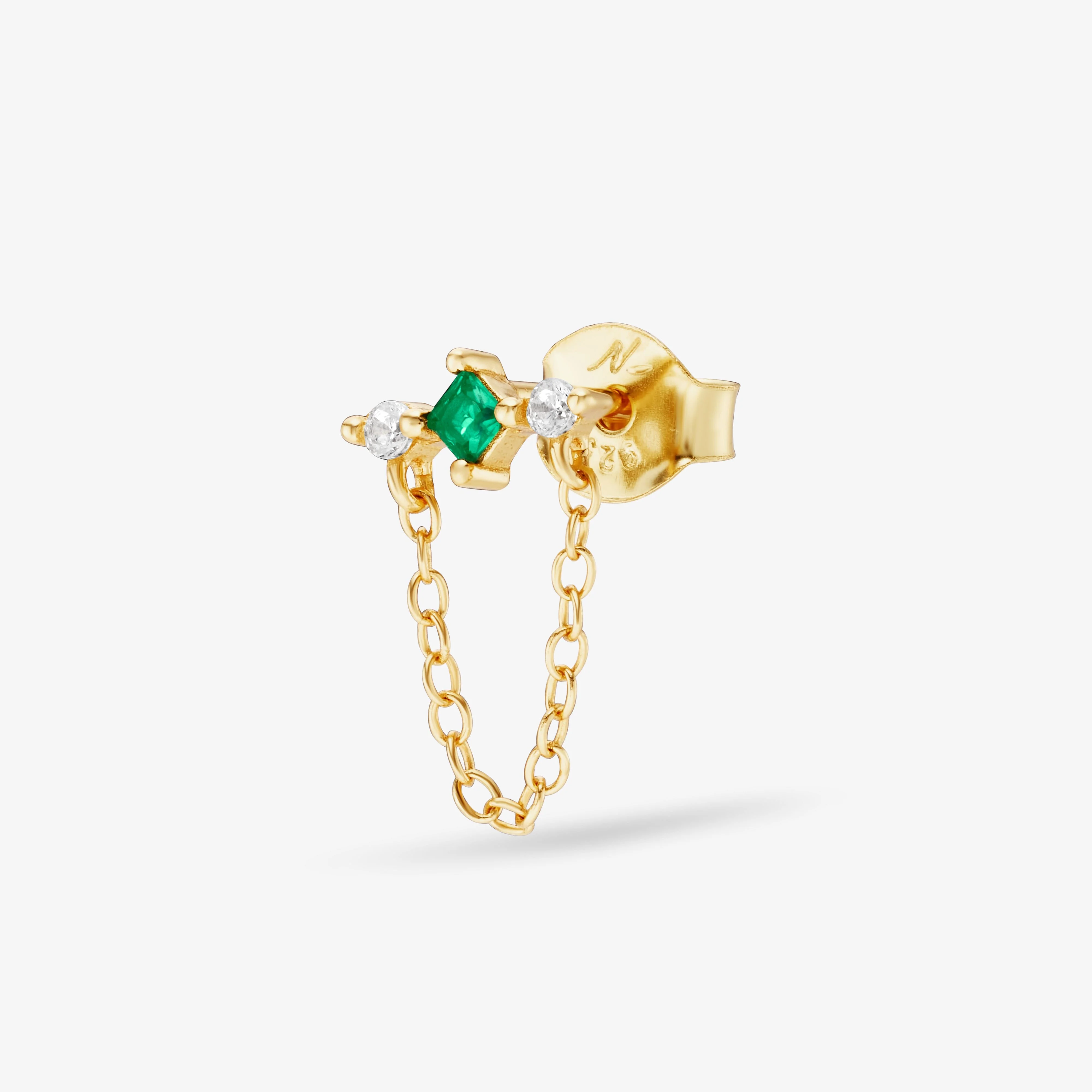 ・ Boucle d'oreille ornée de pierres blanches et d'une pierre verte émeraude.