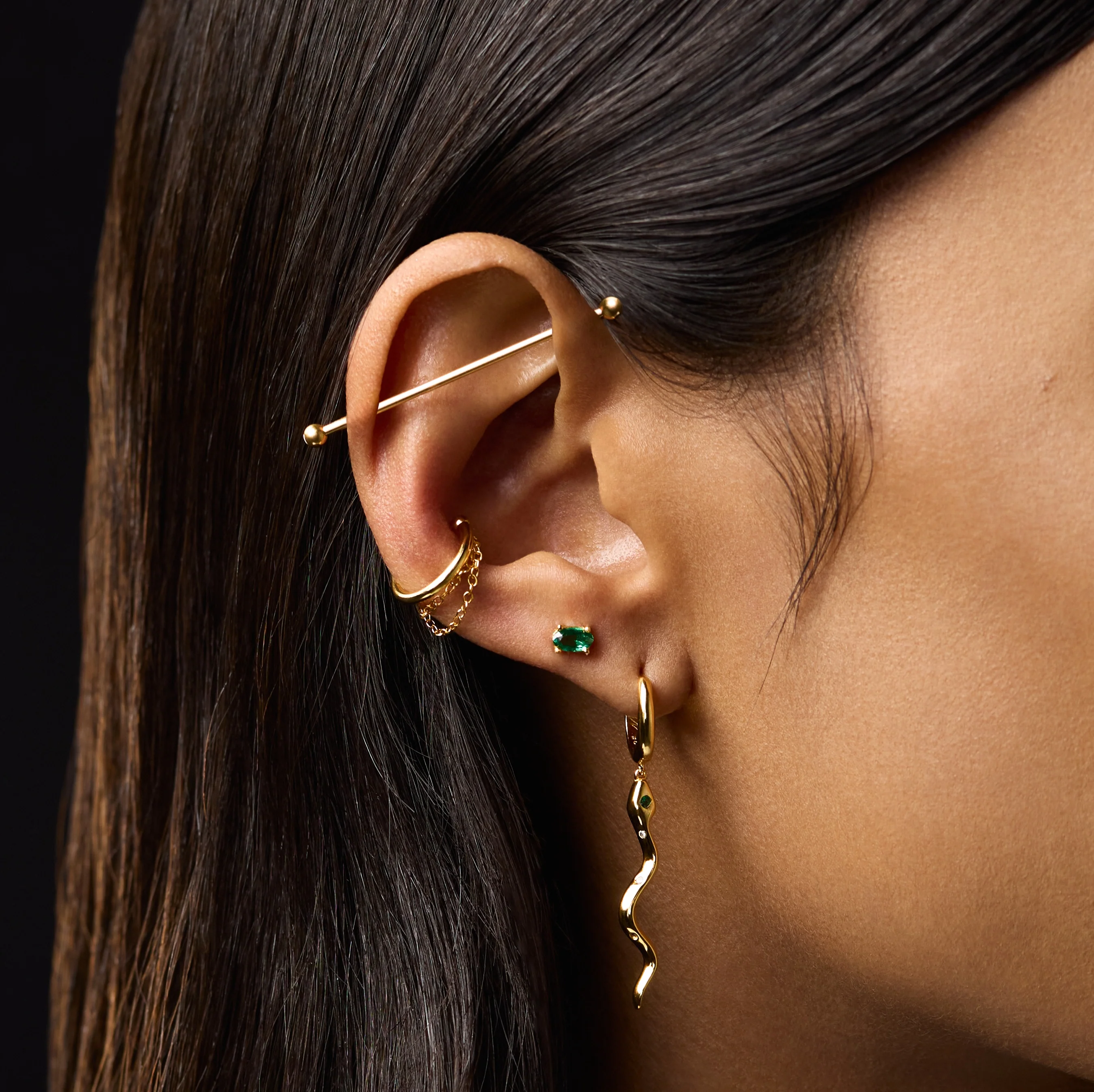 ・ Boucle d'oreille ornée d'une pierre couleur émeraude s'inspirant d'un scarabée